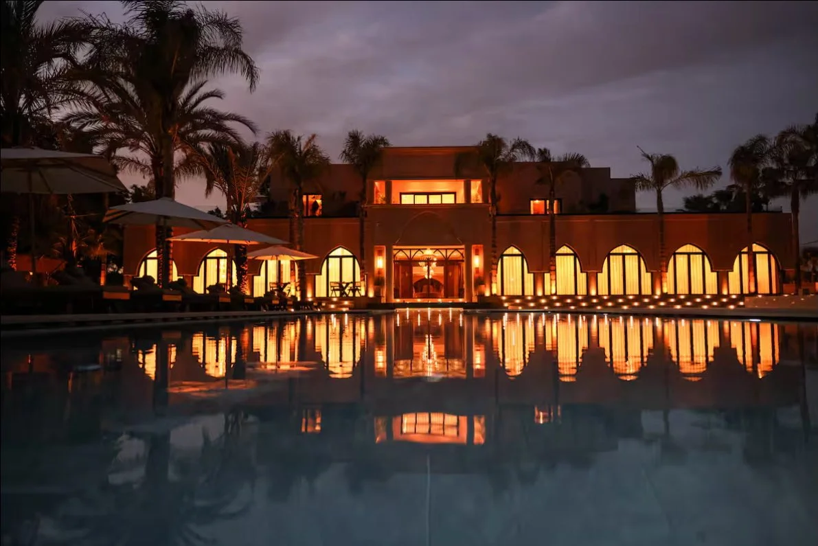 We have taken over Villa Loudi a serene and sophisticated retreat, where Moroccan architecture meets contemporary comfort. Elegant suites and private bungalows provide quiet, beautifully designed sanctuaries, each space thoughtfully appointed to encourage rest and reflection. The central lounge invites guests to unwind in soft, natural light, surrounded by warm décor and panoramic views that capture the essence of Marrakech. Two outdoor pools - one overlooking the landscape, the other nestled within a private garden - offer tranquil settings for relaxation throughout the day. With a dedicated spa for hammam rituals and tailored treatments, Villa Loudi becomes more than a place to stay; it is a grounding backdrop for connection, renewal, and the shared experience of Stacey’s celebration.